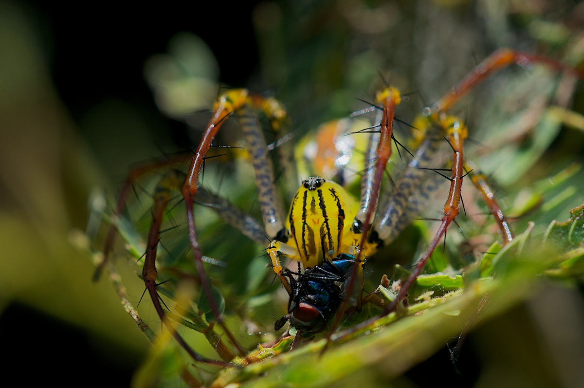 2. Паук попытался скрыться, как только Жеже организовал над ним тень, правда муху не бросил :-)