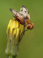 Александр, если честно то ни как Просто у нас в определителе нашел похожую (снимал Виталий Гуменюк), ну и я за компанию подстроился к названию. А вот и нет. Только что посмотрел у Ежимухи толстокрылой Ectophasia crassipennis тоже по средине брюшка (сверху) есть полосочка как и у моей. Возможно это и она, тоесть Ectophasia crassipennis. А по ракурсу в определителе у Ectophasia oblonga не видно.