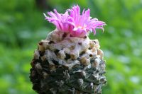 Цветение Ariocarpus fissuratus (семейство Cactaceae). Возраст растения: 20 лет