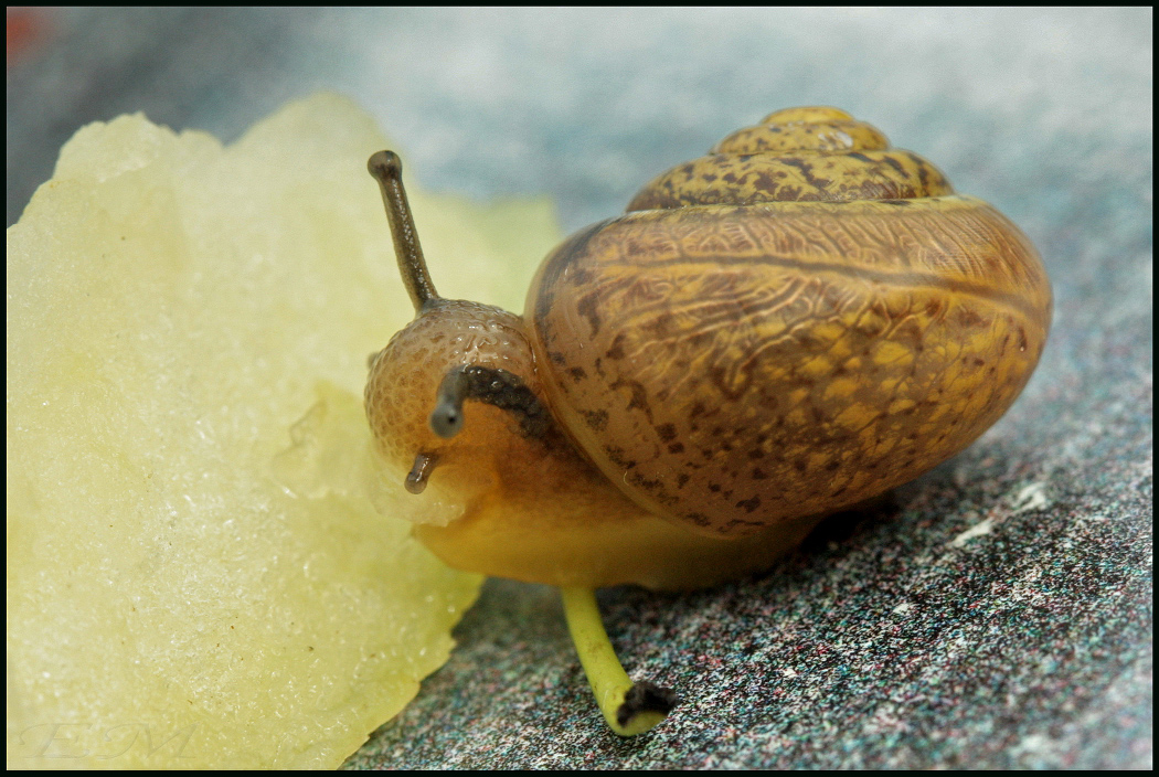 Улитка очень хотела полакомиться, но ситуация была как в известных частушках про муху и арбуз. Пришлось помочь.