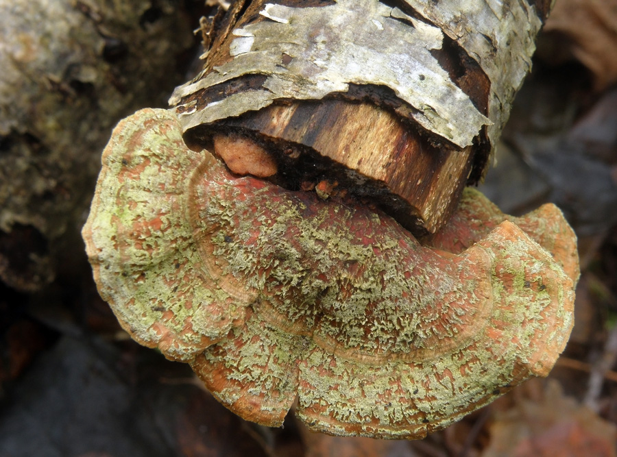 Эти грибы встречаются на сухих стоящих или упавших стволах. Сейчас некоторые начинают покрываться зеленоватой плесенью и этот дополнительный цвет придает грибам еще более интересный вид.