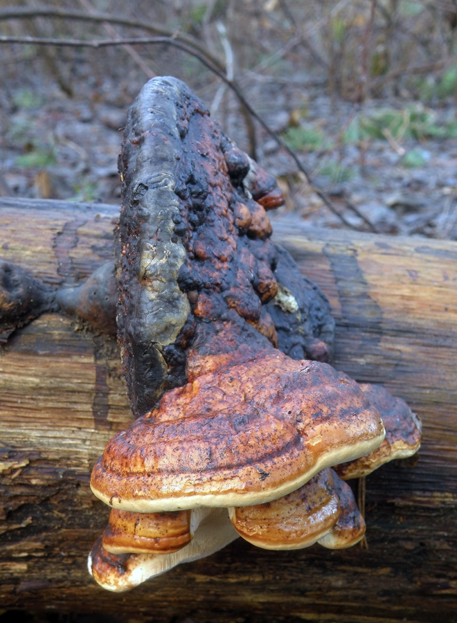 На днях сделал интересный снимок трутовика. Видимо дерево с трутовиком упало и на старом трутовике вырос новый, но уже сориентированный параллельно земле, как должно быть.