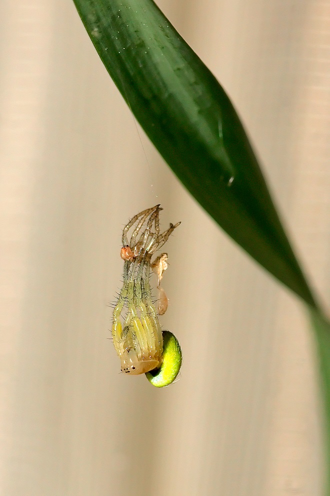 Отдыхал в дачном домике от трудов праведных, а на столе стояла самодельная вазочка с садовыми цветками. Не вдалеке - фотоаппарат на штативе после утренней макросъёмки. И вдруг, на цветах появился маленький яркий паучок, явно с каким то намерением, т.к. вёл он себя странно. То что происходило дальше - смотрите сами...
