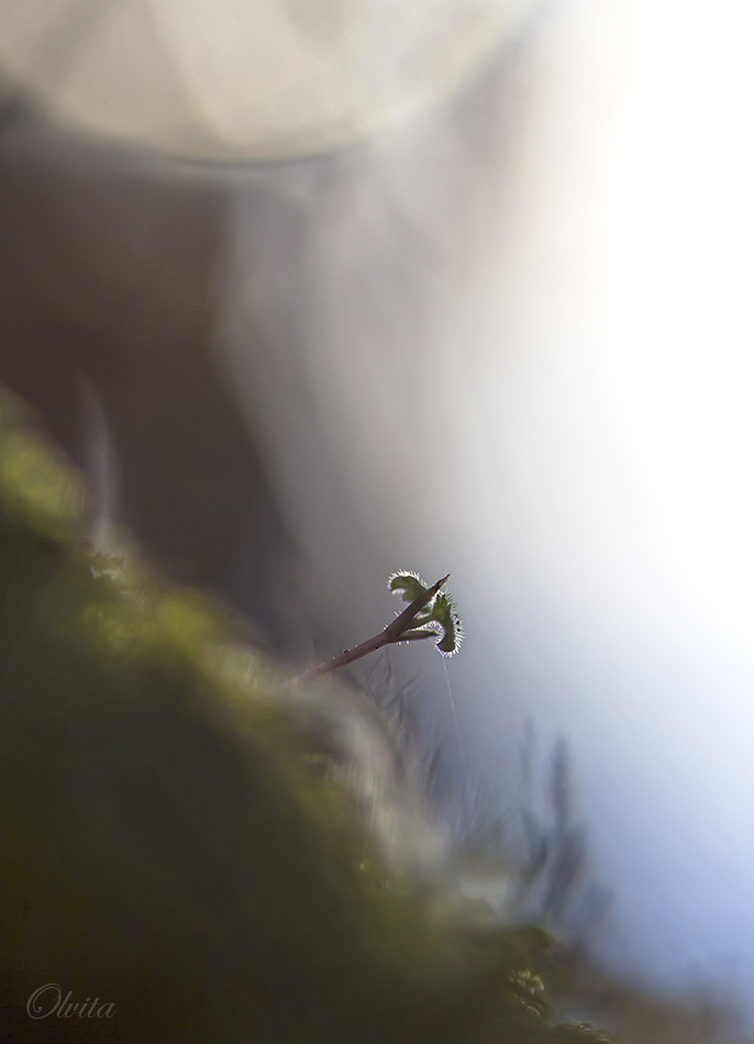 Первые пробы макросотки сегодня были недолгими, в ближнем овраге, потому как поднялся ветер, и прогулка была приятной лишь отчасти. Но временами выглядывало солнце, и даже пригревало Первоцветов пока нету и следов, только дикий лук и ростки вероники...