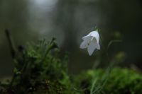 Ползала вокруг колокольчика с тем, чтобы он выглядел в кадре немного поменьше, и вдруг услышала сзади явственное цыканье. Если бы это был человек, то, думаю, шаги или шорох веток были бы слышны. В леших я, конечно, верю. Но слабо. Поэтому смело обернулась. Сказать, что я что-то почувствовала было бы неправдой. Ничего я не почувствовала. Но поворачиваясь, сразу же посмотрела в ПВУ (правый, верхний угол) Среди сосновых веток поблескивали любопытные круглые чёрные глаза. В первые секунды даже не заметила рыжее тельце, распластавшееся на такого же цвета сосновой ветке. За мной наблюдала белка! Эка невидаль - белка... Их полно в городских парках. Но в нашем лесу белок я не видела. Поэтому, вздохнув, всё же стала менять объектив. Белка внимательно наблюдала за моими манипуляциями, а когда всё было готово, просто растворилась среди густых сосновых ветвей. А я вернулась к своим колокольчику и лишайникам. Уходя из леса, услышала ещё один звук - будто взмах крыла большой птицы. Оказалось, его издавал в полёте развевающийся беличий хвост. Любопытная белка вернулась и опять незаметно наблюдала за мной со стороны. С тех пор, глядя на белый колокольчик я вспоминаю белку с её цыканьем.