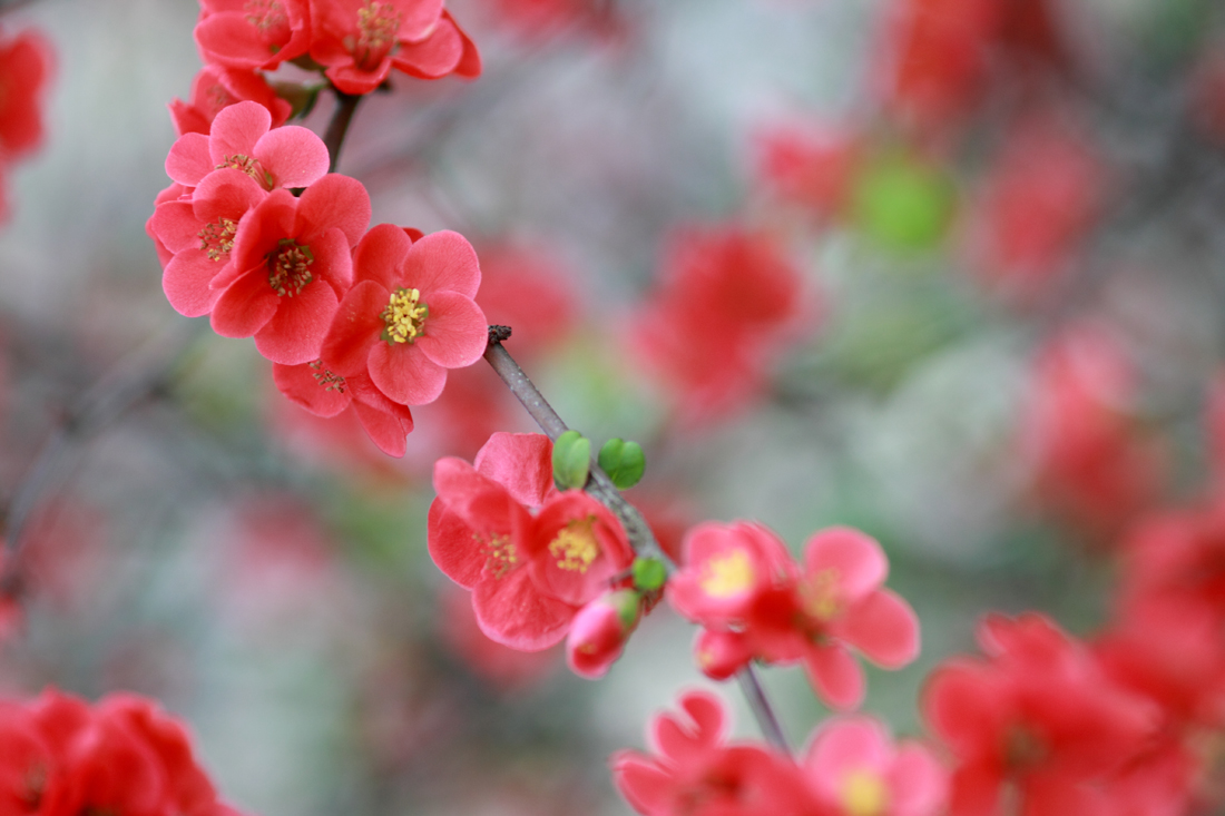 Глядя на роскошный куст цветущего хеномелеса, что тут еще можно сказать!? Он прекрасен без всяких слов! Однако, при любой попытке передать природную красоту цветов (а дело это вполне безнадежное) с помощью фотографии к ее исполнителям «слова» и оценки очень даже могут появиться. Поэтому на ваш вопрос «Что в этом цветении не так?» я отвечаю: там все очень замечательно! А вот фраза «Каждый цветет, как умеет» вероятно может означать: « В фотографа не стрелять - снимает, как умеет!» Это я и на тот случай, если в рядах моих зрителей и критиков окажутся вдруг ковбои из вышеупомянутого салуна.