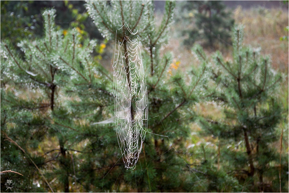 Не сегодня, а несколько дней ранее, встретилась просто гигантская паутина, жаль снять некому было меня в сравнении с ней... Но наверное около метра в диаметре. Что ж за паук- то ее сплел?