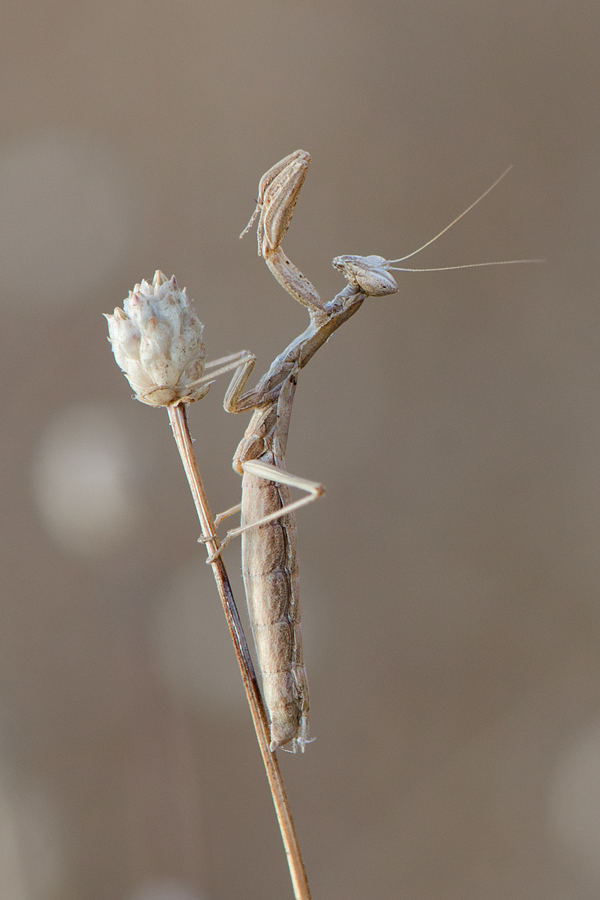 Это два разных богомольчика, и сняты в разные дни. Поза у них потешная, замрут и не шевелятся.