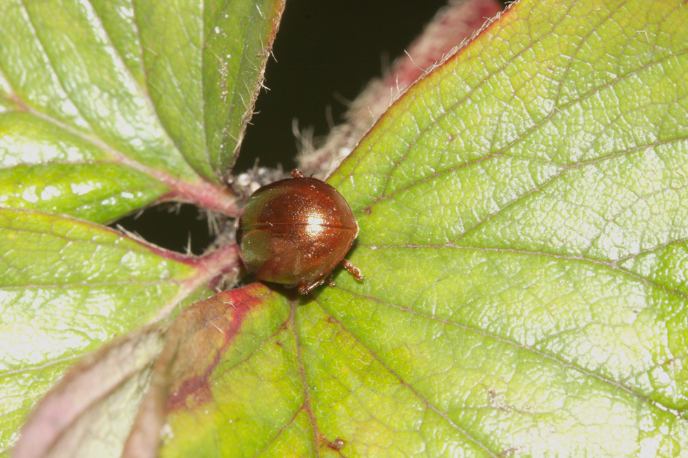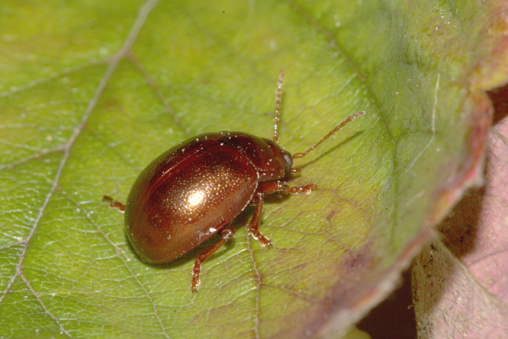 Если длина тела более 6 мм, то скорее всего листоед рыжий -Chrysolina staphylaea (Linnaeus, 1758).