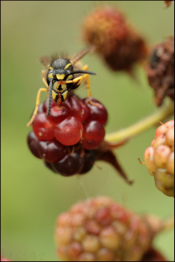 На ежевике (3.3, 4.4), черёмухе (5.5) и землеройке (6.7) - Vespula vulgaris