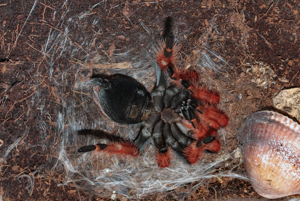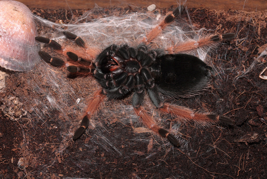 В этот раз удалось заснять процесс с самого начала. За ночь паук сплел себе матрасик и с утра разлегся на нем, практически не проявляя признаков жизни. Собственно линька началась около 15-00 и продолжалась часа полтора.