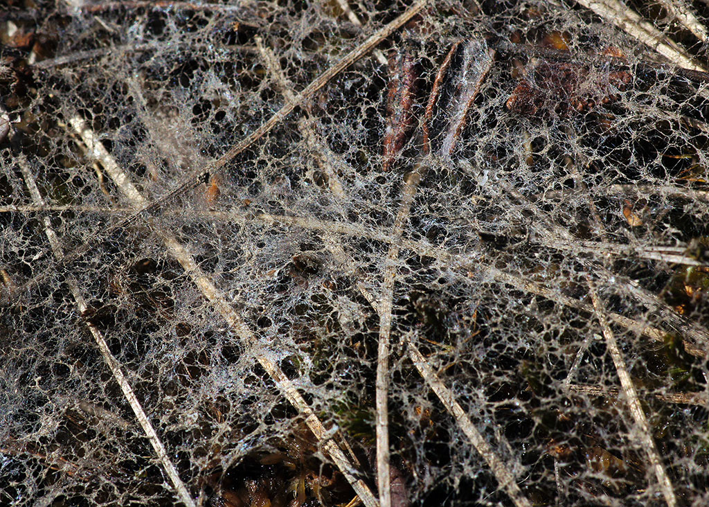 Дочь предположила, что это т.н. "снежная плесень". Чаще всего она является следствием массового развития гриба Fusarium nivale, точнее, его анаморфной стадии, которая называется Microdochium nivale. Но есть и другие грибочки, вызывающие подобную бяку.