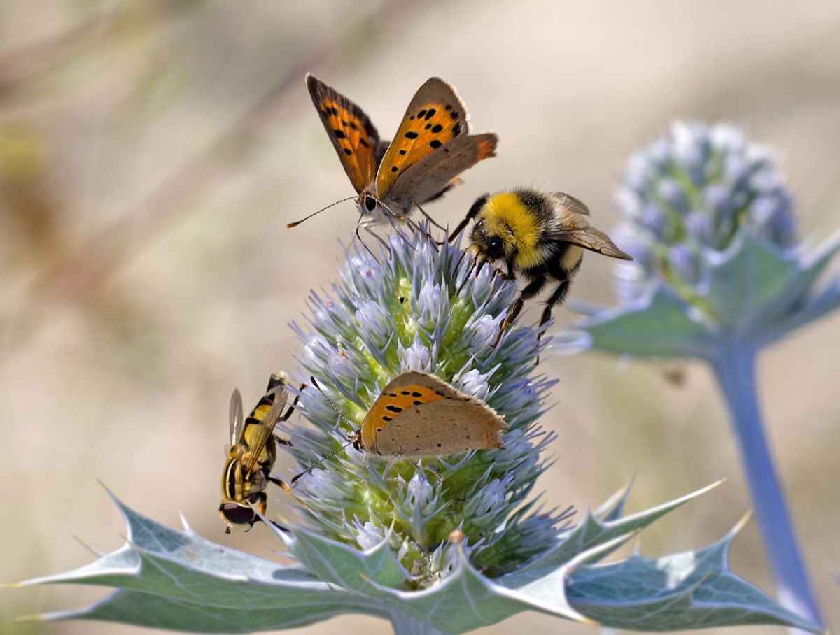 Группа расположилась на соцветии синеголовника приморского (Eryngium maritimum)
