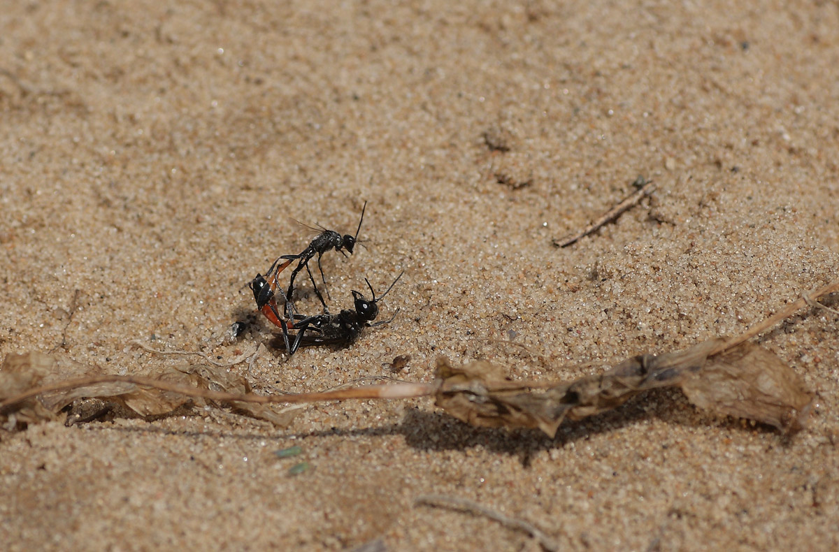 Автор увидел и зафиксировал некое событие в жизни роющих ос-аммофил (Ammophila pubescens), но вот с интерпретациями, как зачастую бывает, ошибочка вышла, да-с...