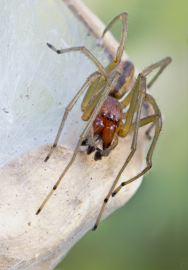 Выкроив время на работе удалось сфотографировать парочку хейракантиумов (Cheiracanthium erraticum). В порыве страсти самец лишил передней лапки суженную, а затем закончив дело, был таков.