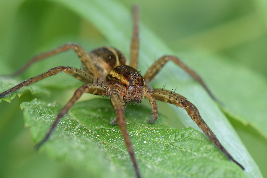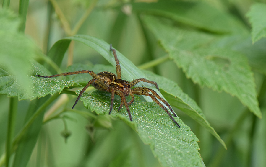 Это был огромный паук сидящий на малине. И сидел он с гордым видом, видимо осознавая свой размер и поэтому не обращая на меня ни какого внимания. Я ползал вокруг переставляя штатив, но паук даже не пошевелился. Лишь на несколько секунд сдвинулся с места пытаясь поймать проползающую рядом с ним муху, но это ему не удалось и он снова принял свою гордую позу .Я проходил несколько раз мимо, но паук так и сидел не меняя позы.