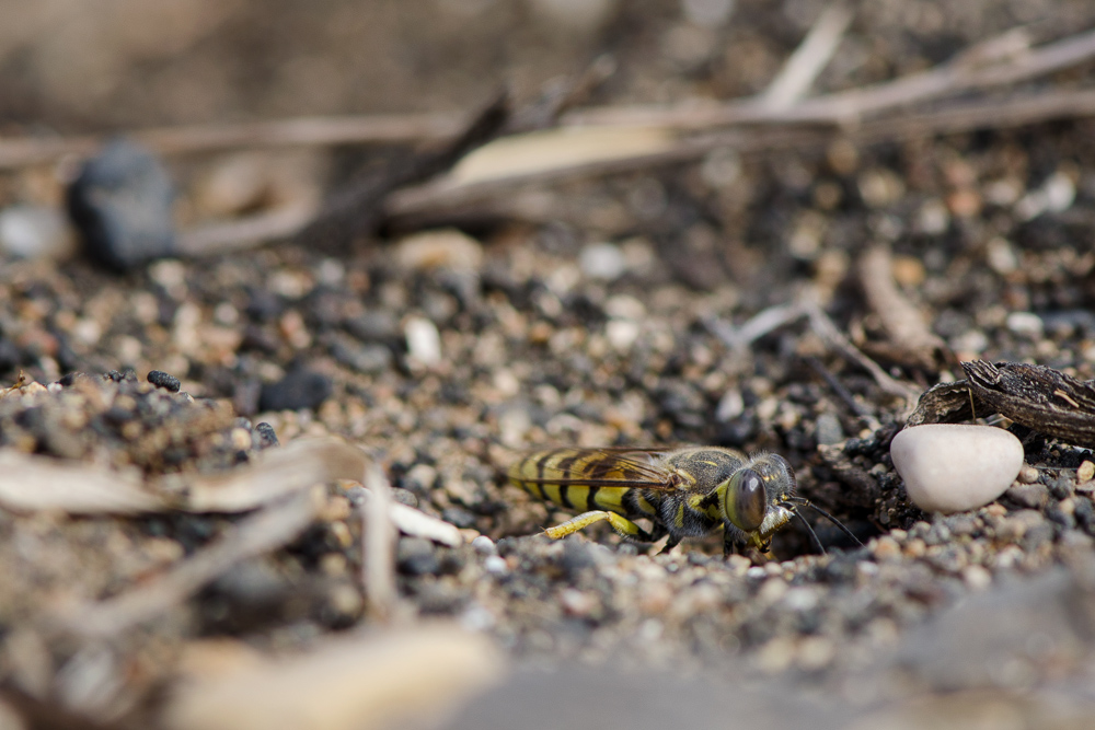 К сожалению, нет. Минут 20 я наблюдала за копашением осы, но отвлеклась на цветущий рядом морской лук.