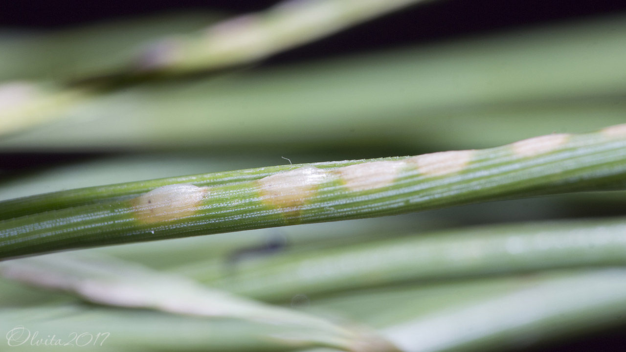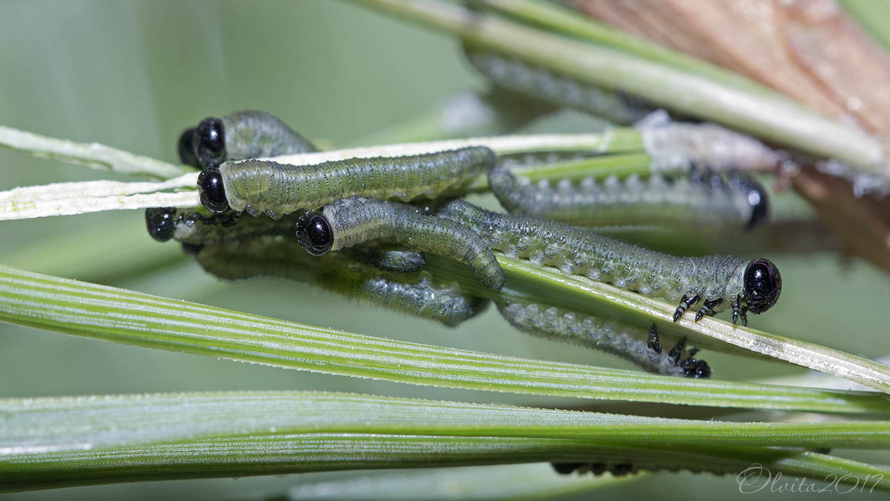 Такие вот зимние макромодели вывелись на сосновых ветках и обнаружились по следам жизнедеятельности в виде зелёной пыли. Угораздило же их не вовремя родиться... Возникли благие намерения их выкормить, но была им не судьба, видимо