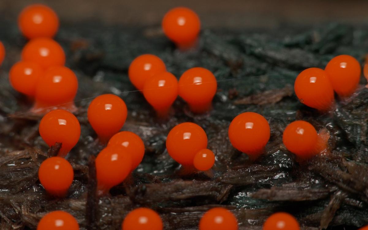 Есть такой анекдот: "Блондинка Вика очень любила спасать несчастных животных. Поэтому она покупала в магазине живых карпов и отпускала их на волю - в лес ... " Наверное блондинка Вика не только карпов в лес отпускала, но и лососей ))) Какие-то миксомицеты, а какие - не знаю. Давно хотела сфотографировать эти грибы, но в этом году нашла их только один раз. И вообще, как ни странно, в этом году я встретила не так много миксомицетов как обычно, хотя лето было дождливым. Пришлось снимать на открытой диафрагме, т.к. когда я их нашла были сумерки
