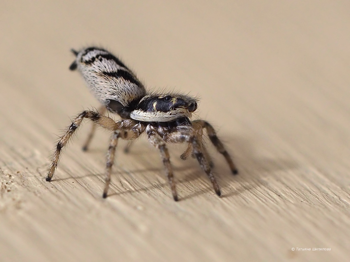 Совмещал приятное с полезным. На втором фото явно пытается выпустить паутинку и смыться с этого места.