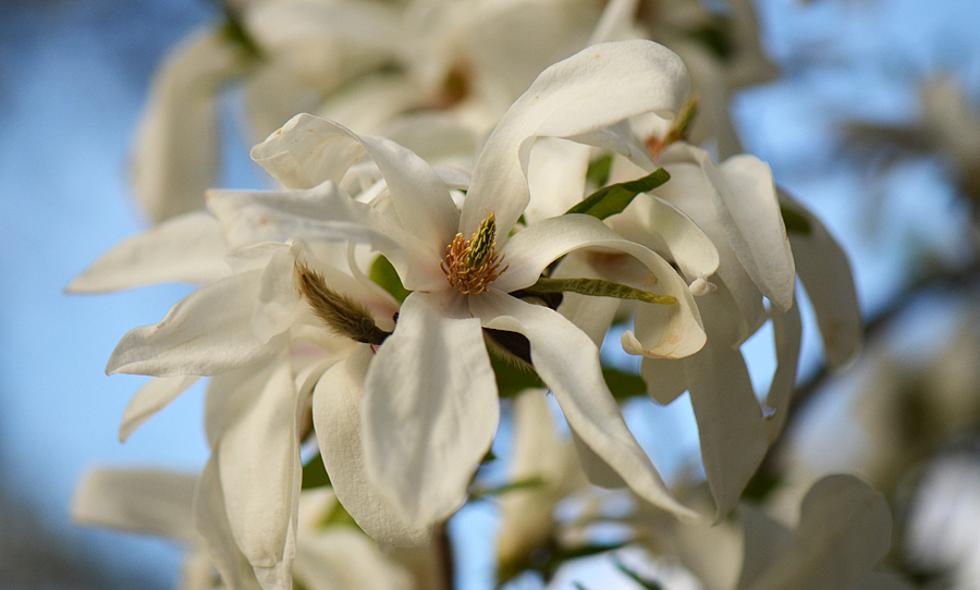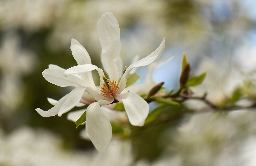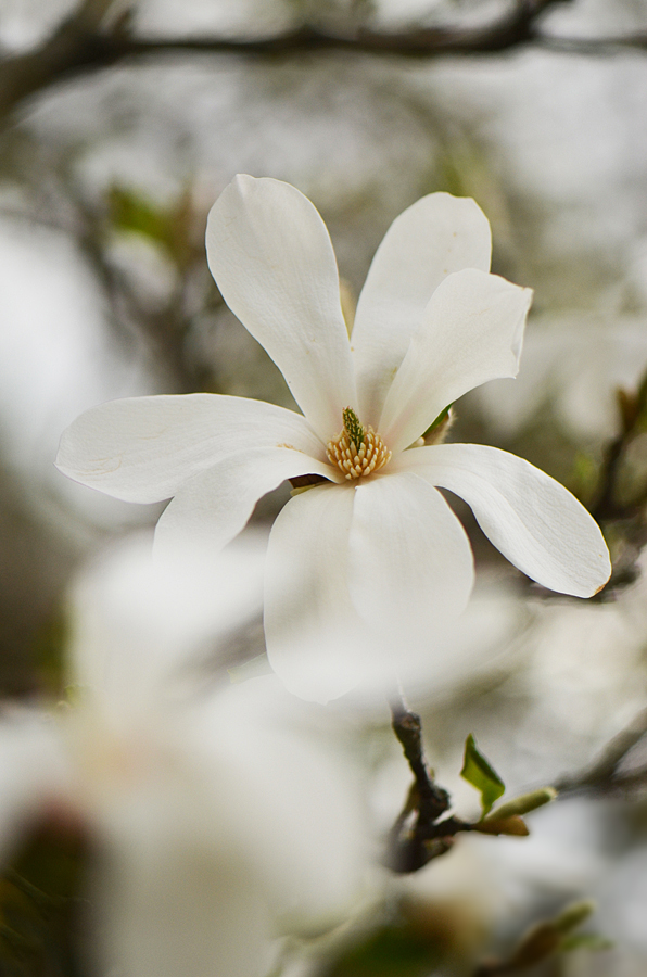 А когда ни будь цвела? Может еще маленькая, хотя унас в саду деревце метра два высотой цвело вовсю. Только края цветов видимо от мороза коричневые, подсохшие. А большие деревья нормально, только цветы высоко. Есть еще такая магнолия. Мне она для сьемки не очень нравится. Длинные, красные лепестки и большинство цветов еще не распустившись валится набок. Название когда то записывал, а в этом году и таблички нет