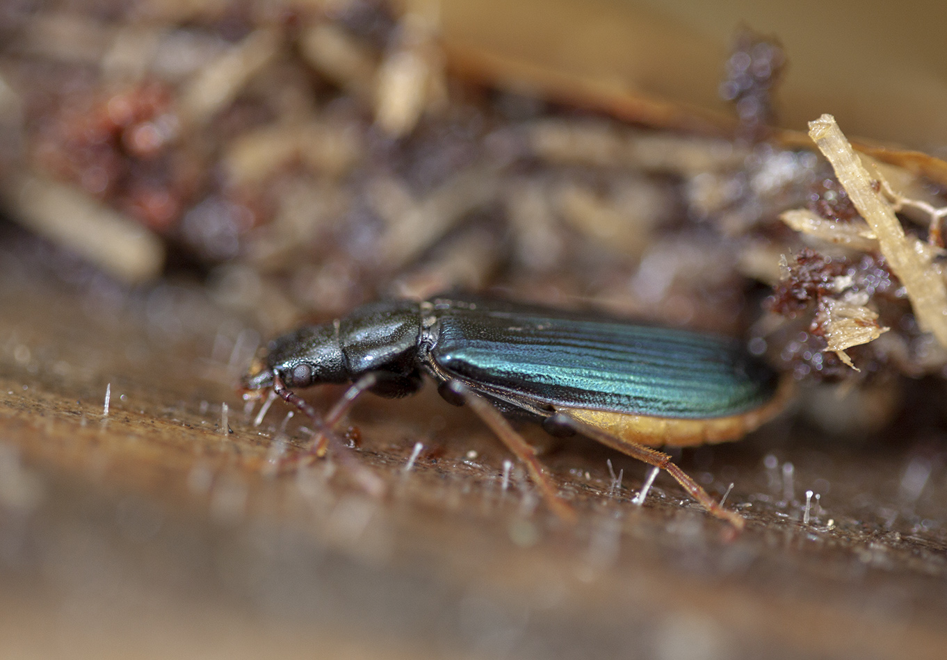 Под корой лежащей на земле вершины сосны обнаружил нового для себя жука. По всей видимости, это представитель семейства Трухляки (Pythidae), для которого в Макроиде предусмотрены только 2 вида, а фото есть только одного - Pytho depressus. Судя по фотографиям, у этого вида большие цветовые вариации (https://macroid.ru/showgallery.php?cat=55984&mode=box) и мой тоже особенный - он фиолетово-зеленый.