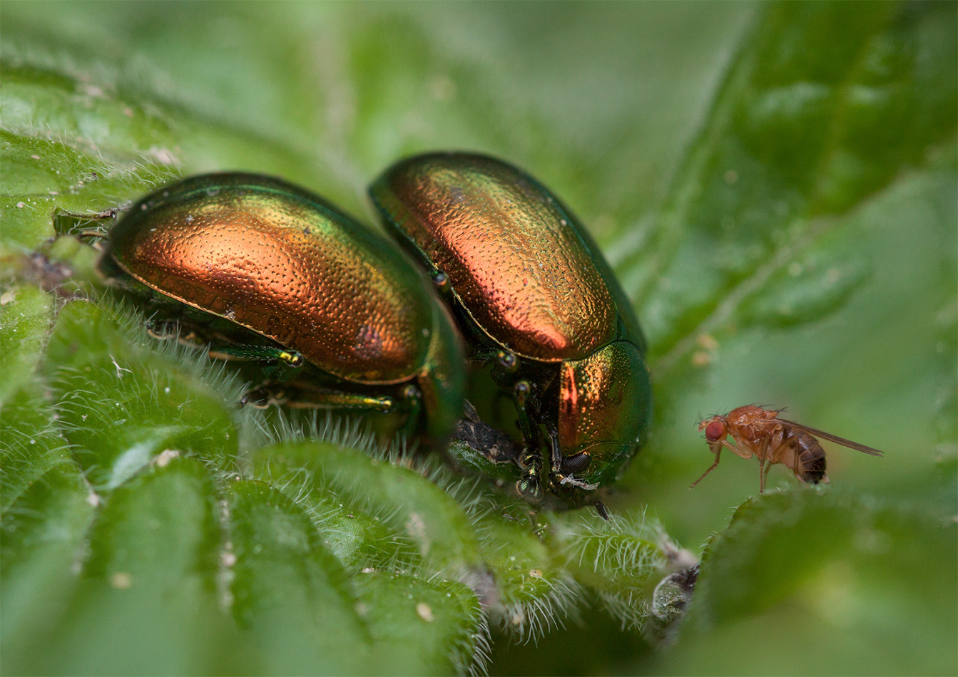 В роли наблюдателя (это ТАК называется?) выступила мушка, свидетель милой беседы двух листоедов