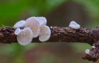 После дождей на подстилке из веточек повылезали вот такие мелкие до 1 см. Потом нашёл на трухлявом пеньке. Вчера пошёл переснять, и ни одного не нашёл. Что за грибы - не знаю. Может кто нибудь подскажет?