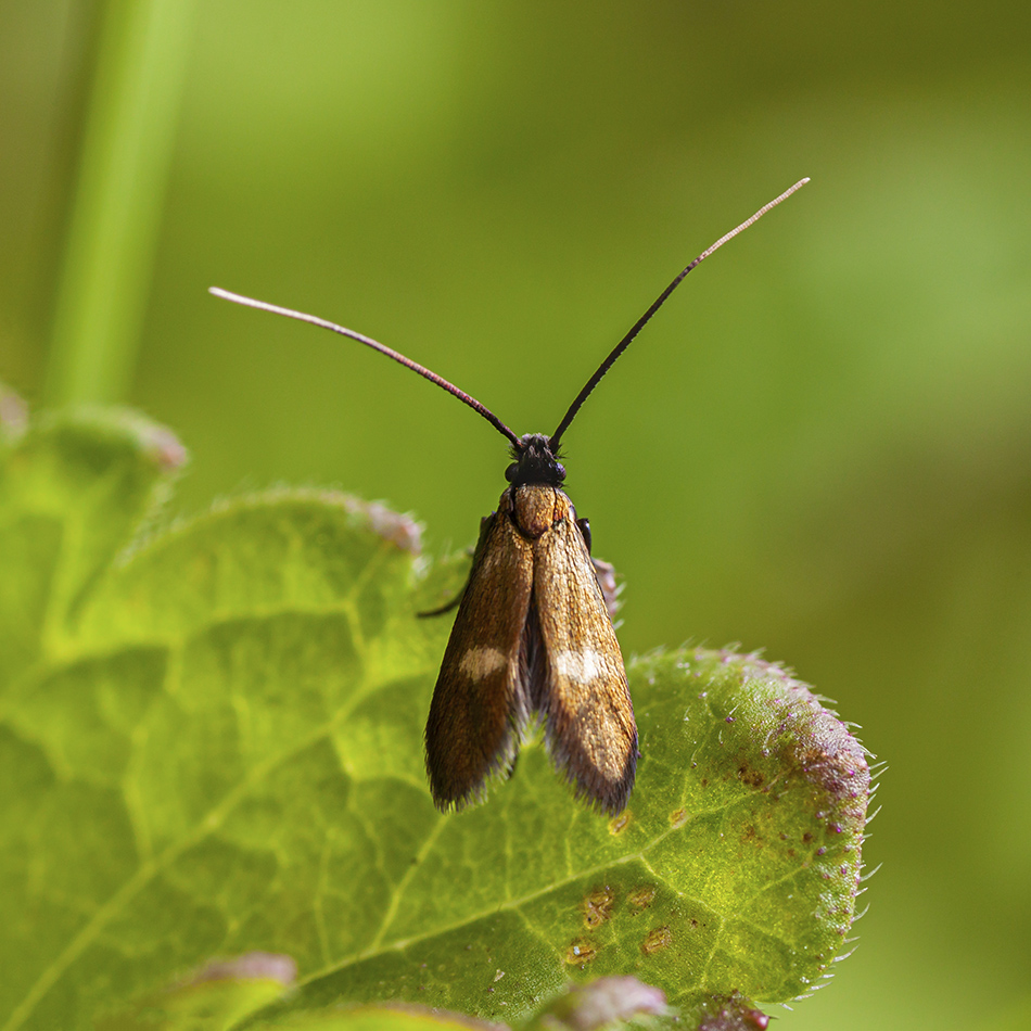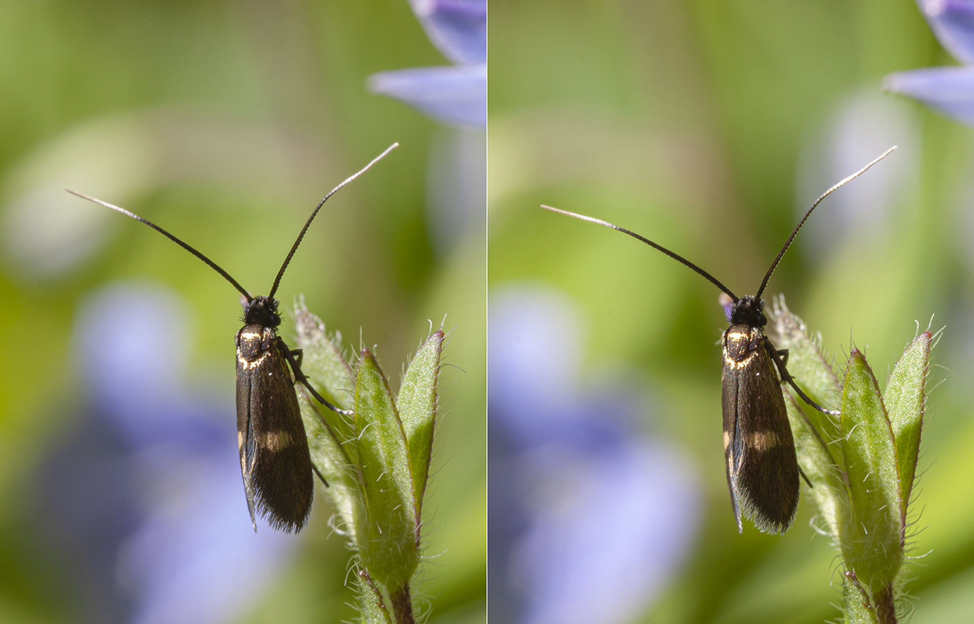 Как видно на фото, цвет крыльев этих молей (от темно-серого и коричневого до золотистого) сильно зависит от направления падающего света. И здесь как со снежинками - все знают, как снег искрится, но сфотографировать эти искорки не просто!