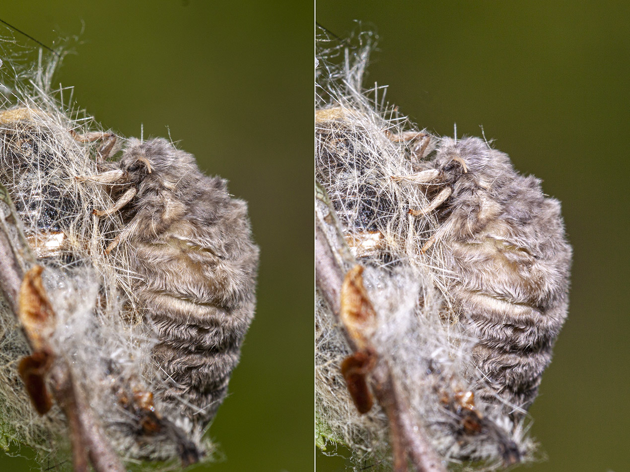 Через несколько дней питания листьями березы гусеница сплела рыхлый просторный кокон