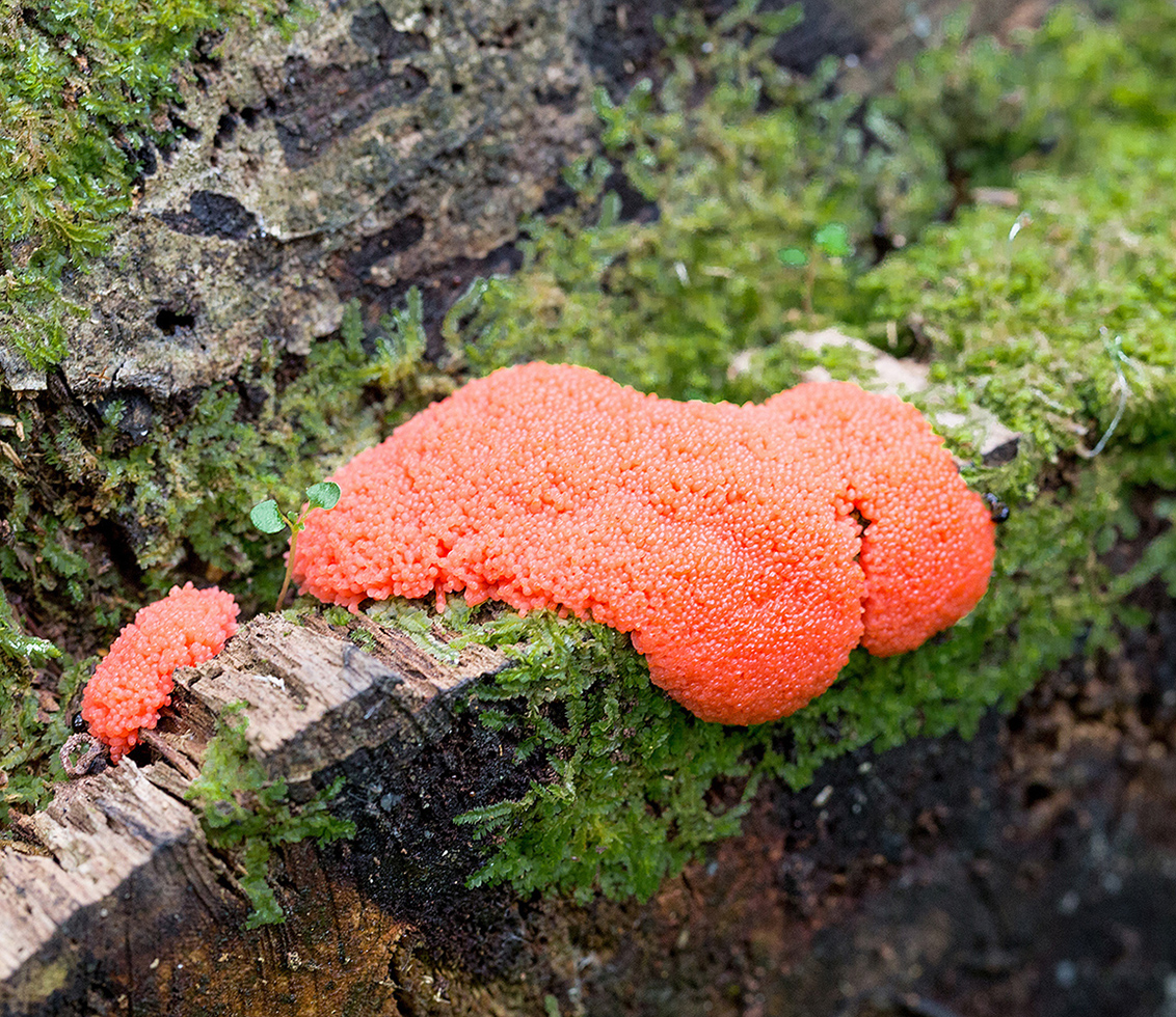 По-видимому, две формы дифференцированных в трубочки плазмодия: ярко окрашенные - под пологом леса, бледная - на открытой солнцу поляне. Считается, что пигментация у микроорганизмов защищает ДНК от повреждений УФ-излучением, но не исключено, что она же способствует лучшему поглощению ИК-лучей, если тепла не хватает для нормального развития спор. Тем более и форма, в виде плотно упакованных "светодиодиков" с линзой на вершине, этому способствует.