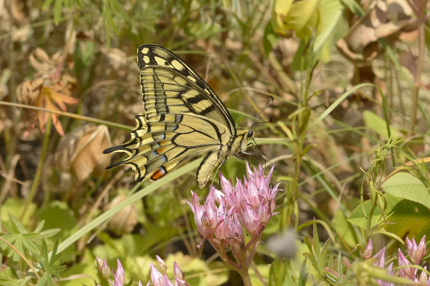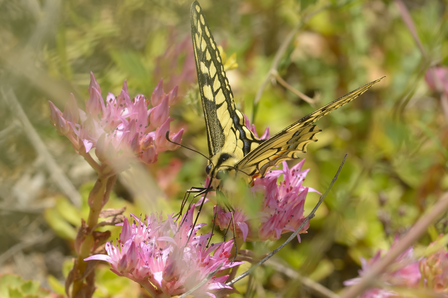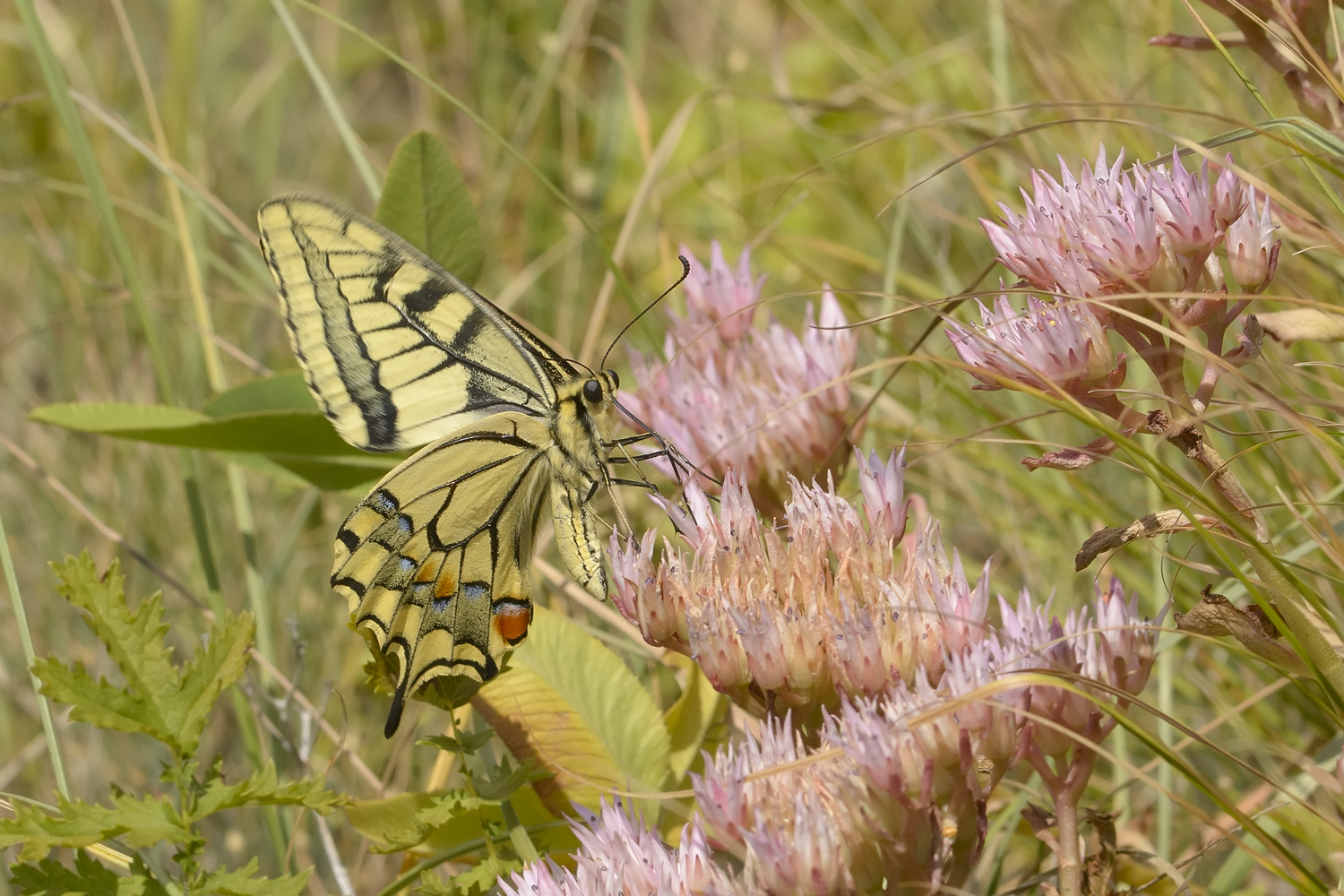 На очитке(?)не приходилось видеть не только махаонов, а вообще кого-либо из бабочек. Обычно сирфиды и др. мушки объедают тычинки, заодно опыляя.