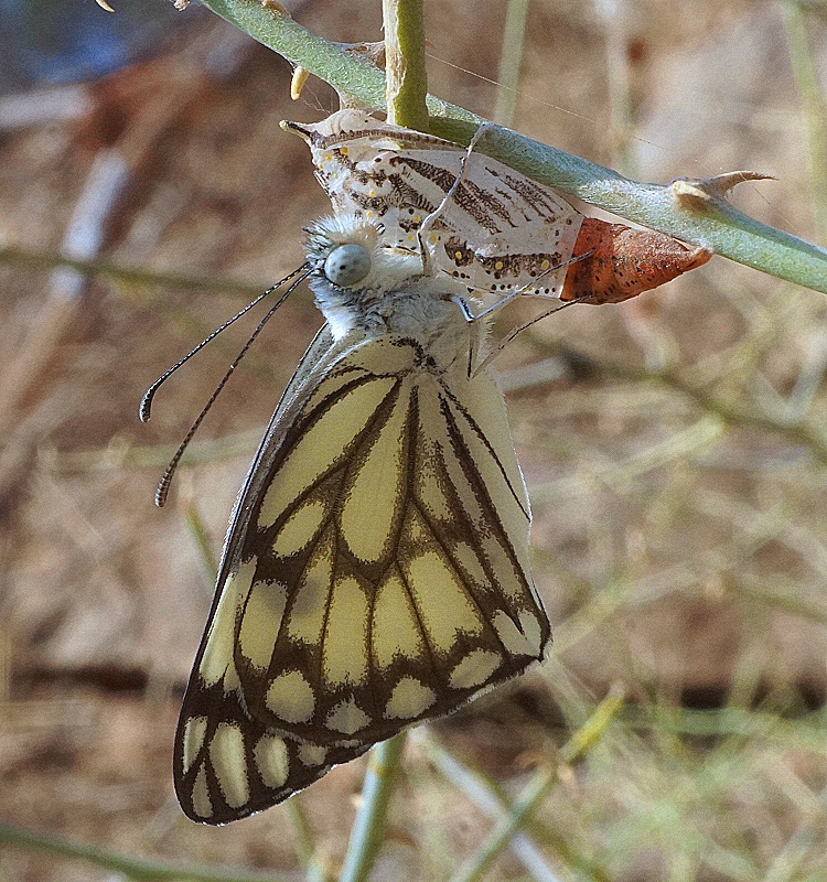 Куст каперсов, на котором вместо листьев куколки бабочек