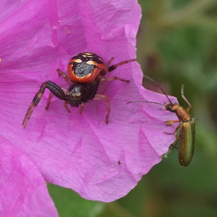 Несколько раз жук пытался забраться на паука, но тот сгонял его. Наконец, паук его хорошо послал и жук, огрызаясь, исчез.