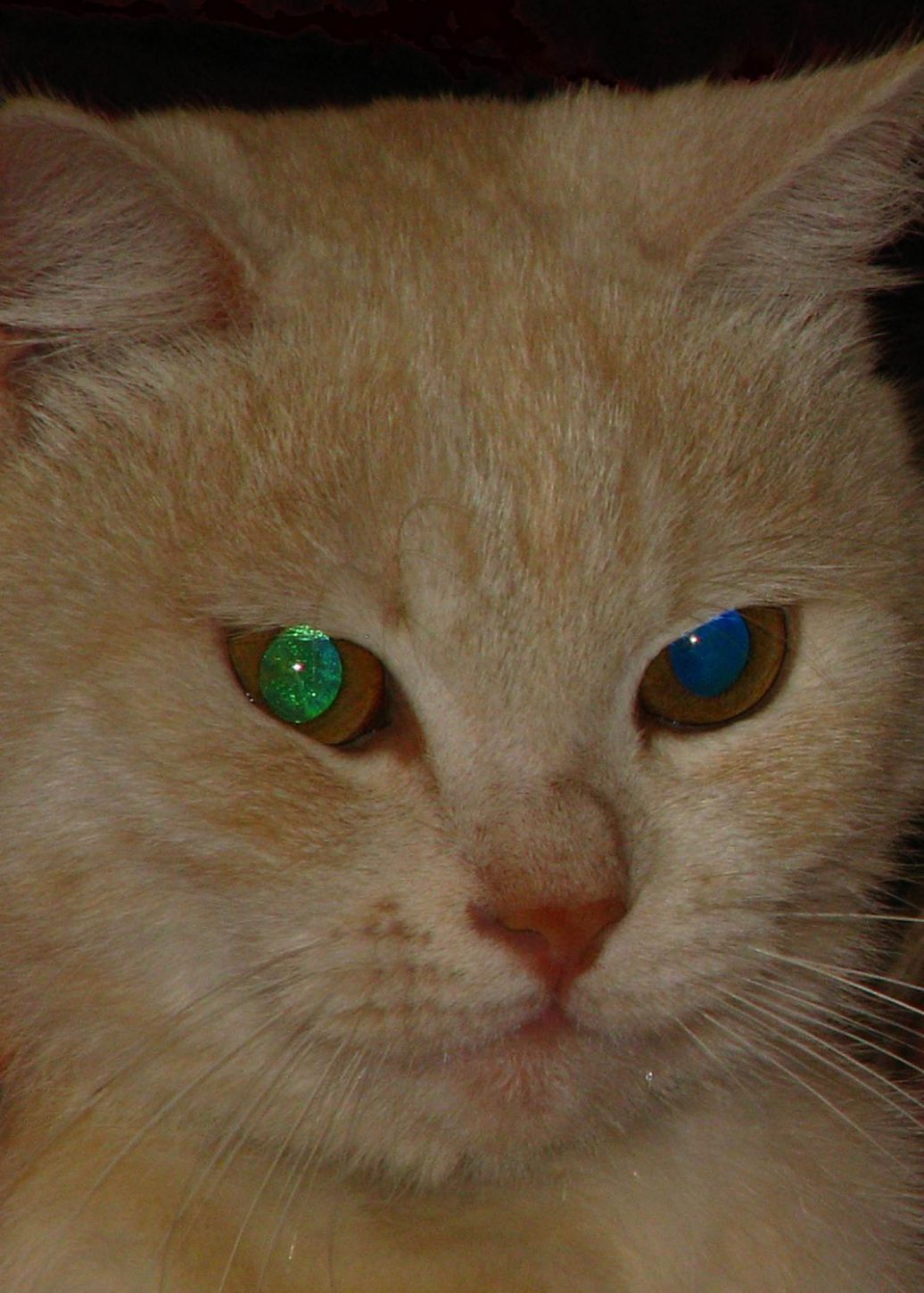 Ну не знаю, у альбиносов часто глаза разные. Может у этого не так явно, а пых просто усилил эффект.