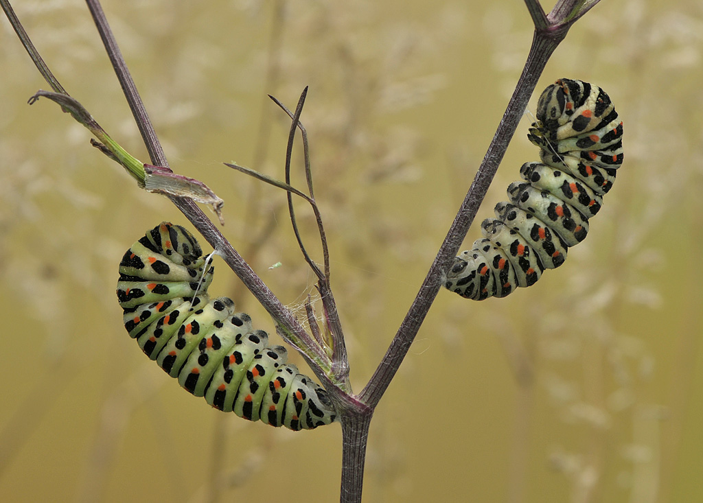 С фермой я, пожалуй, не справилась бы Случайно нашла волшебное поле. Такого кол-во гусениц махаона и во сне не видела. На каждом зонтичном растении штук по 10. Смотрела на это макрушечное счастье и глазам не верила... Естественно пяток гусениц взяла с собой. Героически кормила их. Все закуклились, но без моего "зоркого глаза". Все закукливания проспала. Зато теперь знаю, что от того момента, когда гусеница махаона привязывается к растению и до появления куколки проходит ровно полтора суток. Надеюсь, что рождение бабочки, хотя бы одной не просплю