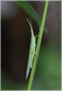 Один саранчук прятался от меня за травинкой, а другой в это время - убегал. Здесь они встретились
