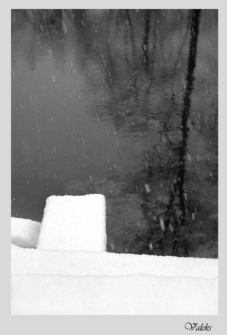 Зима - она разная бывает! Особено это заметно за городом, на Природе, вот на этой чистой (почти горной ........"чикинская Швейцария") речке. Тихая и незамерзающая, с никем нетронутым настом на мостках и грустно падающим снегом. Иллюстрация к моему любимому Шарлю Азнавуру ("Падает снег...."). И эта же речка бывает звонкой, жесткой, яркой, с каким-то особым патетическим настроем.....,с хрустальной травой, сверкающей ледяными торосами, искрящейся, упрямо бурлящей водой. И даже....с изумительной, не уступающей соловью, песней на закате дня крошечной серенькой птички - оляпки. Вот ,только что ,она распевала на этих ледяных камнях и вдруг бросилась вниз и скрылась в шумном водовороте....пробежала по дну, схватла одну - другую личинку водных насекомых и уже появилась на другом камне, воспевая красоту этой речки, и этой жизни....). А так вот рождаются огромные ледяные звезды, целые скопления звезд на чистом прозрачном льду озера. Чтобы снять морозный рисунок и звездочки поменьше, надо взглянуть на оконное стекло уже другим, более узким, нашим любимым макровзглядом.