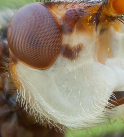 Не нравится мне на этом снимке фон, это работа Рейнокса, на заднем плане освещённая солнцем трава...Но разместил из-за интересной мордашки мухи.