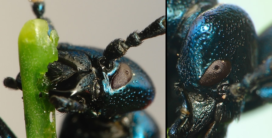Есть ещё вероятность, правда, что жука кто-то так крайне удачно и точно-симметрично ухватил острыми жвалами за голову и потом быстро отпустил (жук лимфой защитился, как обычно). Тогда это боевые раны могут быть.