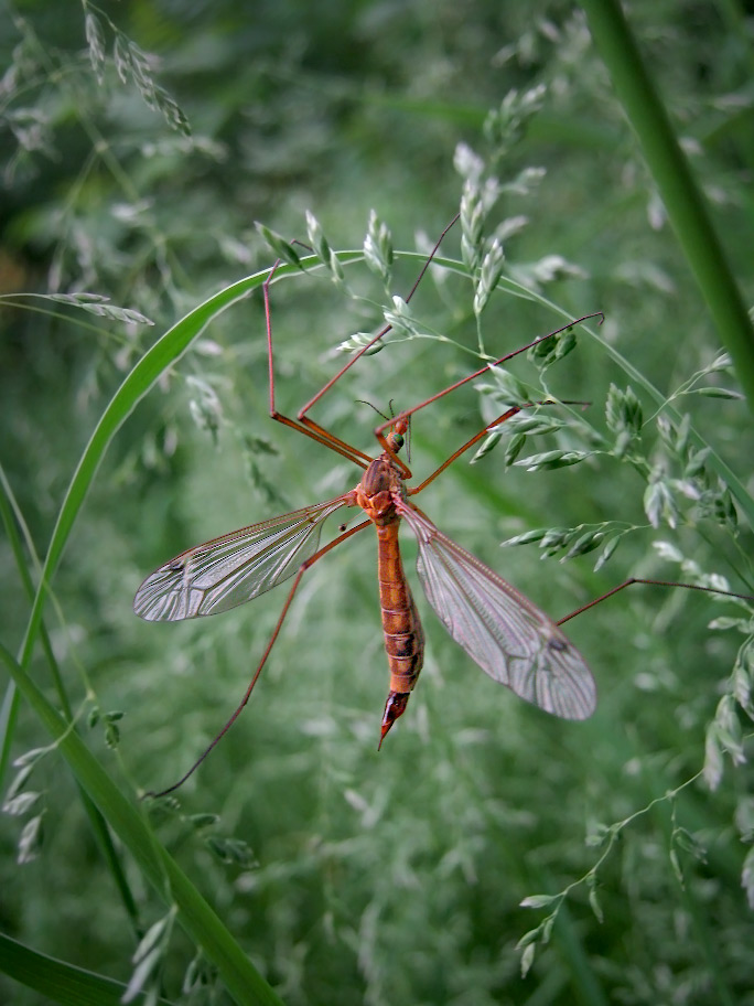 Первый этап обработки в ФШ довольно долгий и муторный с непривычки, но что уж поделать. Тут есть главное действующее лицо - долгоножка, её лучше обрабатывать отдельно от травы, деликатнее, т.е. её надо выделить. Хотя комар по цвету и по фактуре сильно отличается от окружения. Выделять тут можно, начиная с волшебной палки и кончая лассо и кисточкой в режиме "быстрой маски".