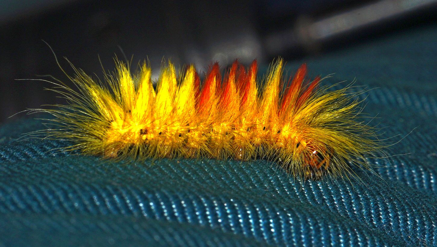 гусеница у меня дома сбежала и под креслом превратилась в куколку