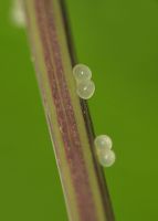 Кто подскажет, это тля? В прошлом году такая животинка была замечена в наших окрестностях. Потом из нее получаются малюсенькие бабочки с синими крыльями,которые не только летают, но и прыгают с треском. А выводятся они вот из таких яиц на диком винограде, причем яйца располагаются на ветке только парами, чтобы нескучно было