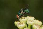 Эта красивая мушка часто выбирала вечером "ночлег" на длинных листьях садового цветка.