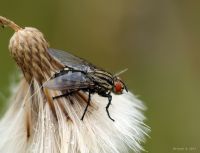 Классная муха - с капельками росы! И цветок очень живописно получился, как белая метелка