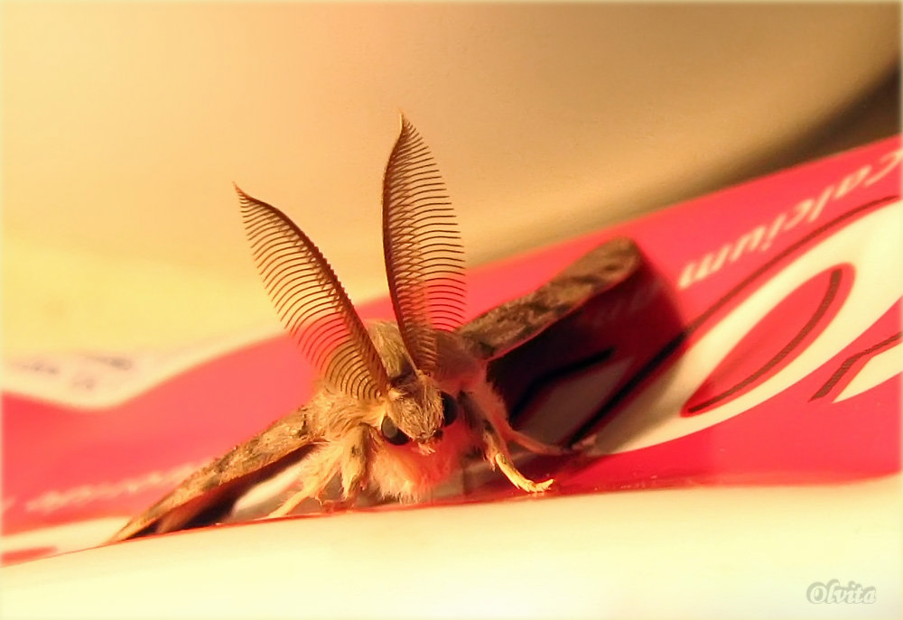 На снимке так здорово, симметрично расположилась бабочка... Отражение объектива дополняет, образуя некую деталь одежды...