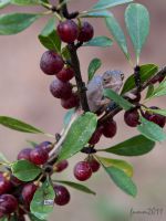 Я увидел его из машины переходящим дорогу.Остановился и пригласил к себе.Два дня он прожил у меня и вот мы выехали на сесссию,после которой этот крошечный(ягодки меньше смородины!) герой был отпущен на свободу на моей полянке в Маалоте.Кто не знает: это хамелеон.