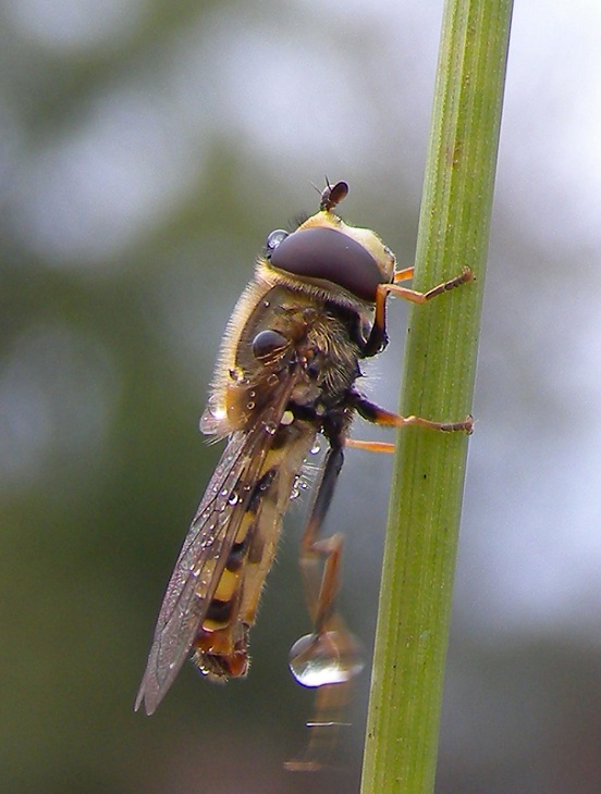 Утром спугнул несколько журчалок с куста сухоцвета, и они перелетели на ещё зелёную траву...