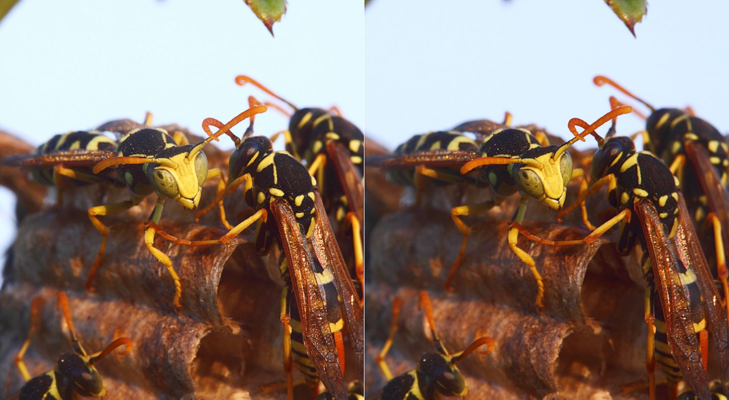 Ещё интересно, как снято: ежели осы всё время в движении, то сделать два кадра для приличной стереопары - это надо умудриться успеть! Или снято с какой-то стереонасадкой?