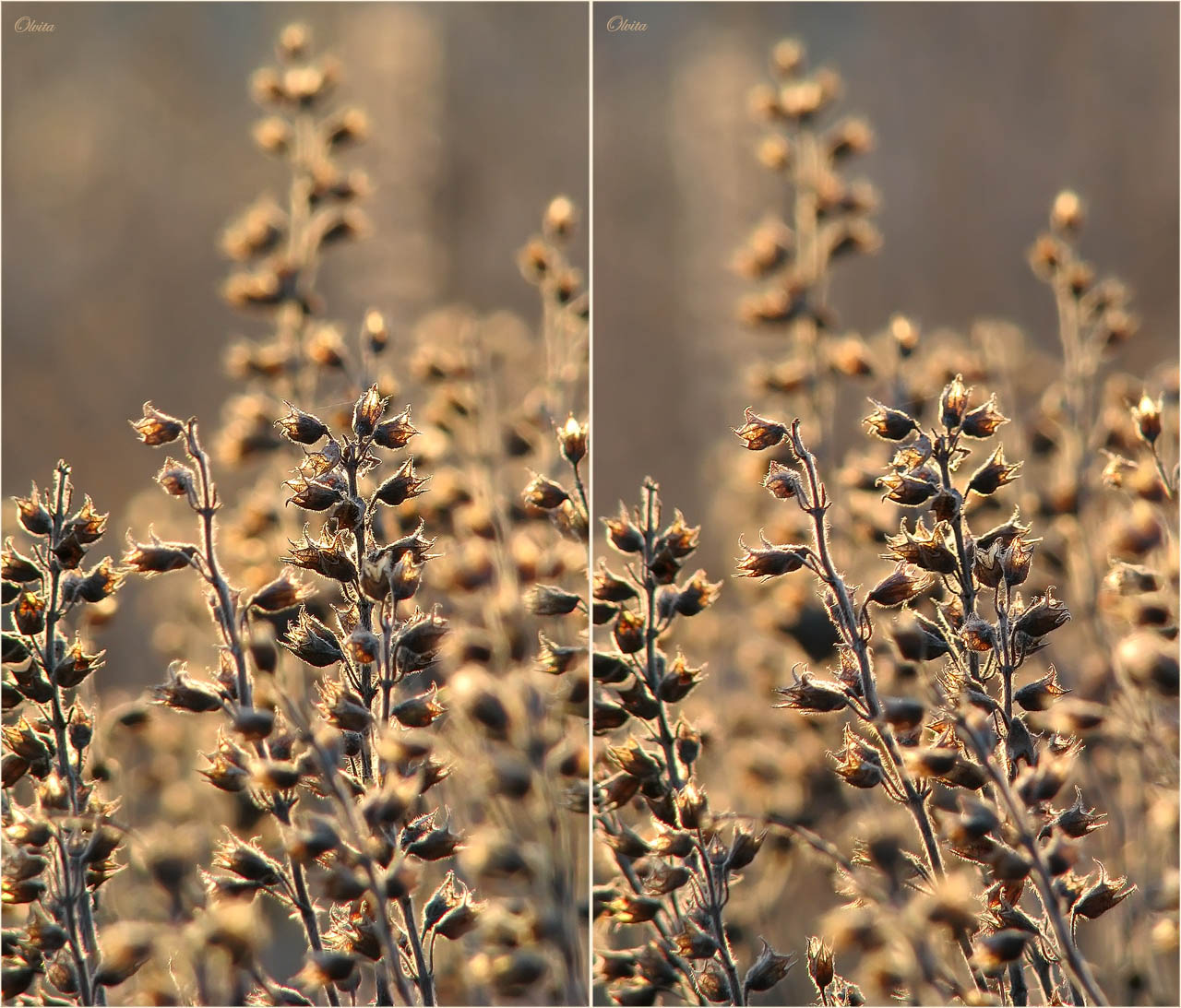 RVV: Привлекательная куртинка, красиво светится. Но все же снимок получился слабым и плоским. Резкие травинки создали одну скучную плоскость, а светящиеся нерезкие - вторую. Да еще на ПП оставлена нерезкая травинка, вообще не имеющая никаких прав на существование: